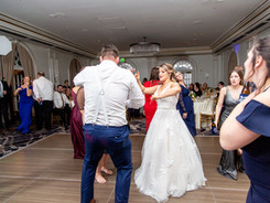 We transitioned to the cocktail hour about 20 minutes away at the Cavalier Hotel. The cocktail hour took place in the main lobby area near the pool. As the guests transitioned from the cocktail to the reception, I knew it was going to be a party. Literally everyone was in such good spirits. With a combination of the perfectly chosen mid-January Wedding date, the beautiful aesthetic of the Cavalier Hotel, the deep love, and friendship each guest shared with the Wedding Couple you just knew it was going to be an amazing night of celebrating this wonderful couple. I knew as their DJ that this was going to be a fun party. I worked closely with Soirees By Lauren as we lined up the bridal party for introductions, I began with my fun welcome to ensure the guests knew what was coming and they began to shout and clap in sheer excitement. I announced for the first time ever as they walked out to Marry You by Bruno Mars- Mr. & Mrs.Cowan!!